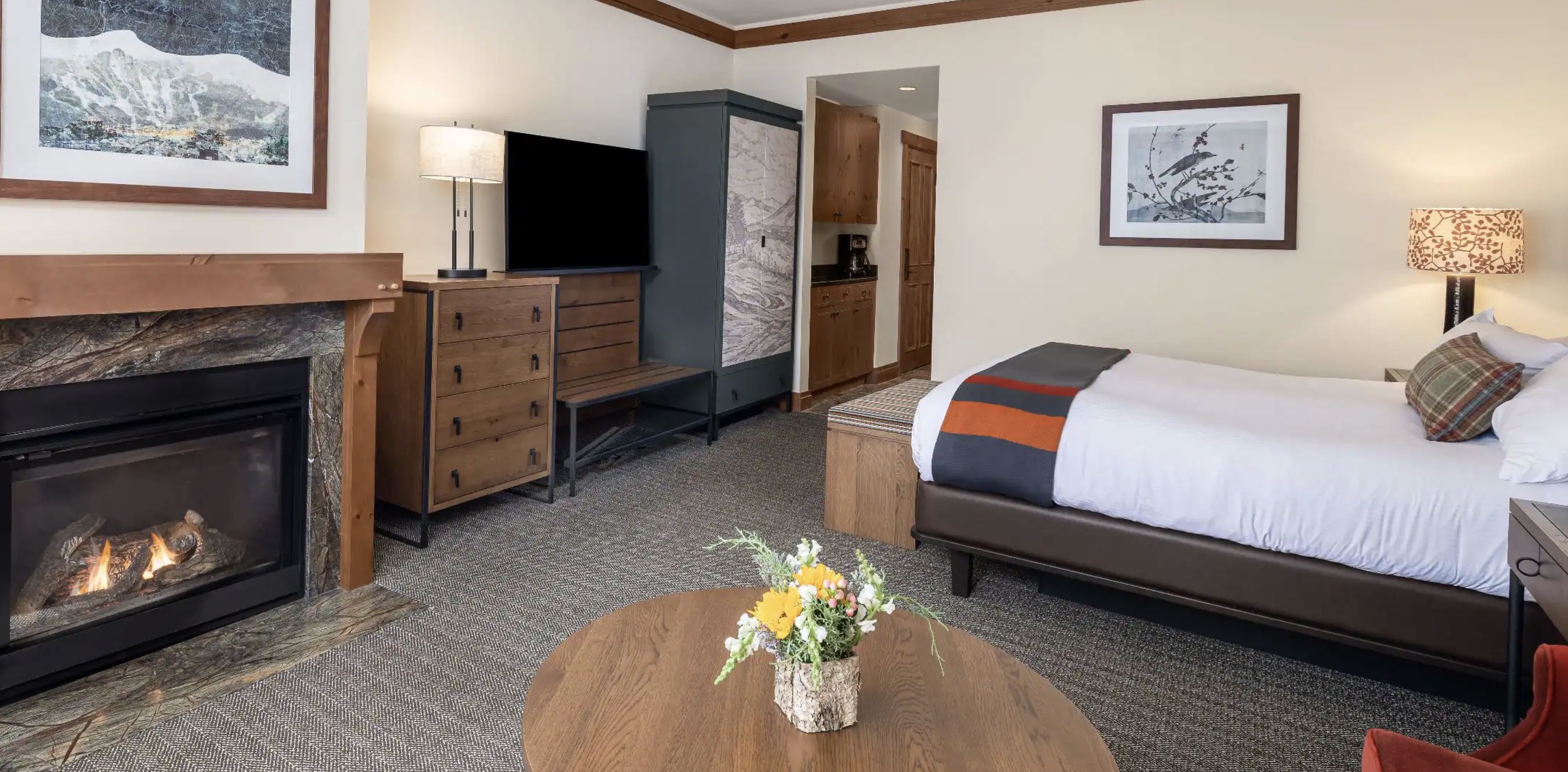 A boutique hotel tucked into Cady Hill Forest, 15 minutes from The Lodge. Quiet, wooded, and an easy walk to Stowe. Shuttles run daily to and from the venue, no car needed.